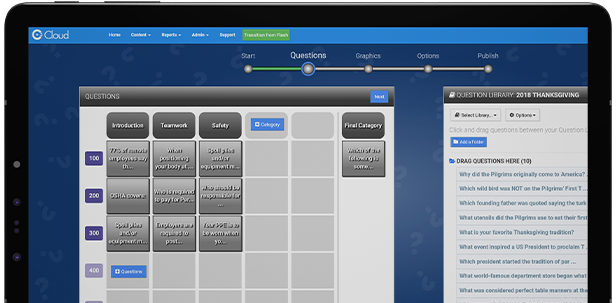 With Spin Off, your students will be off on an energizing adventure, starring your content. Create a category (i.e. Safety) for each “spoke” of the wheel and fill the category with media-rich questions from your content. Rig the wheel, to control which categories and questions are played as students spin the wheel. Load as many questions behind each category as you wish, to have students “drill down” into your content. Your students are a spin away from an engaging exploration of your subject matter. Give it a spin!