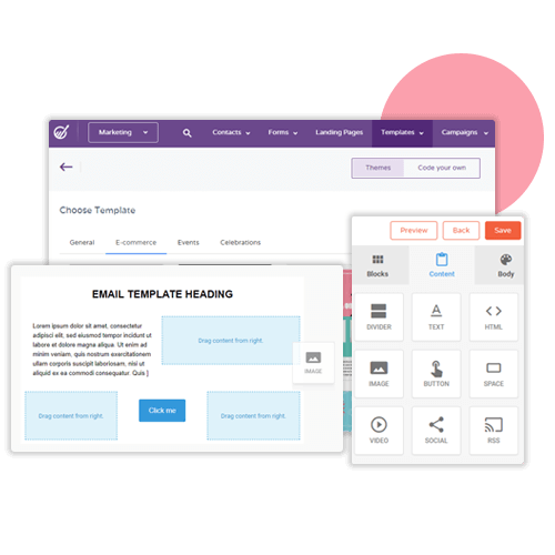 - Choose from a wide array of email marketing templates to suit your business needs. Whether you are a fashion designer, an educational consultant, or a small business dealing in customized products, the visually appealing emails will definitely score with your clientele. You can use the pre-designed templates or personalize one as per your requirement. Presentation matters!