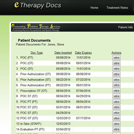 eTherapyDocs provides a completely paperless solution. Those documents specific to your practice, remain specific to your practice. With eTherapyDocs you can easily upload you documents into the electronic filing cabinet, creating a completely paperless environment and enabling approved users to access necessary patient documents.