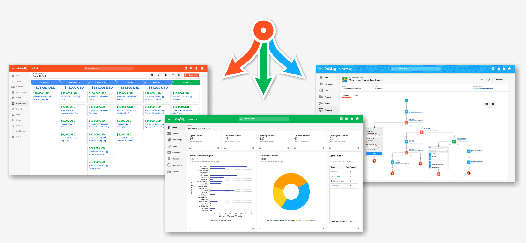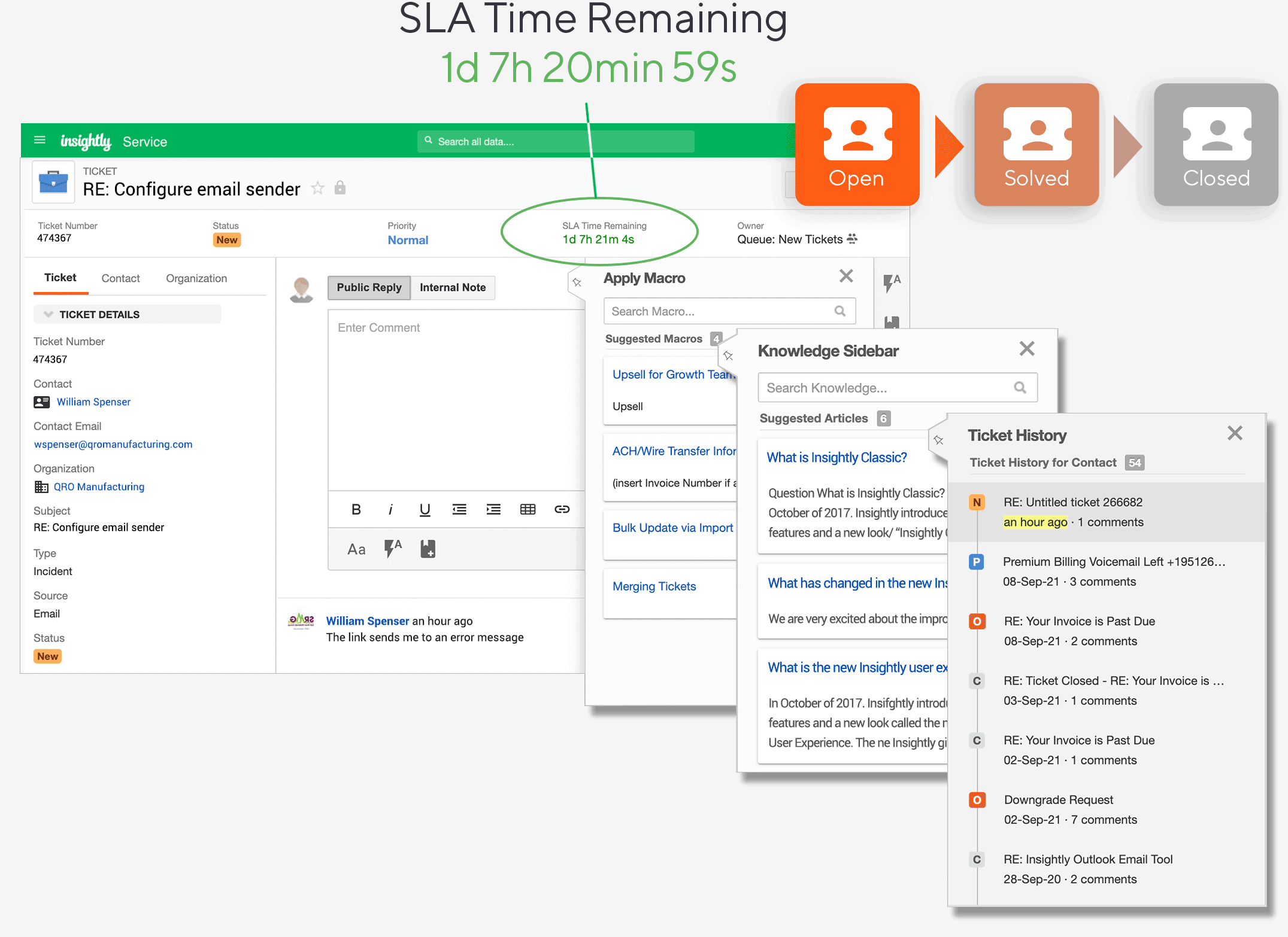 Service is the newest addition to the Insightly unified suite of customer relationship management applications. It’s a service and support application that’s built natively within Insightly, connecting seamlessly with all the applications you use today to run your business. What does that mean to you? Mission-critical customer data is available to all your teams, in real time, empowering them to have more relevant conversations that drive customer satisfaction and success.