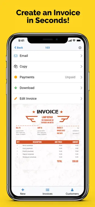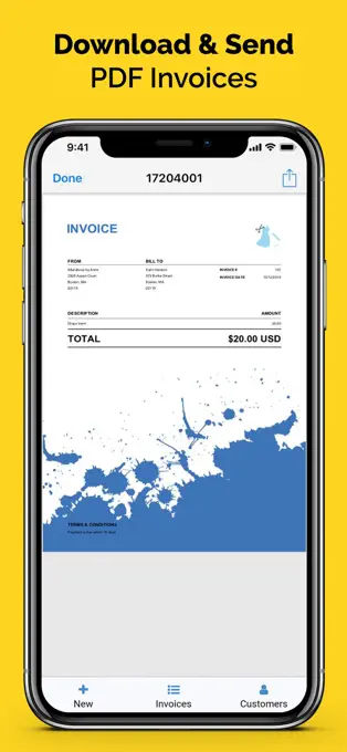 Write an invoice on your phone and send PDF from your desktop!