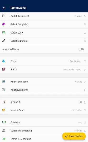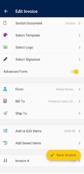 Automatic syncing between the invoice maker and your Invoice Home account