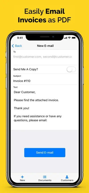 Send PDF invoices directly to customers via email