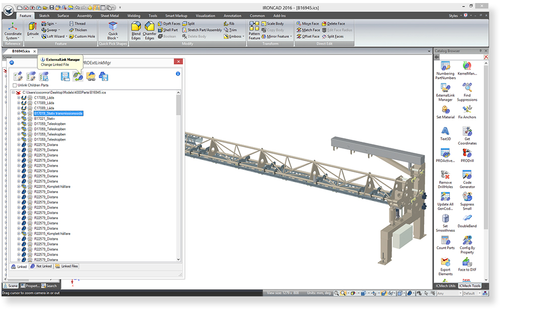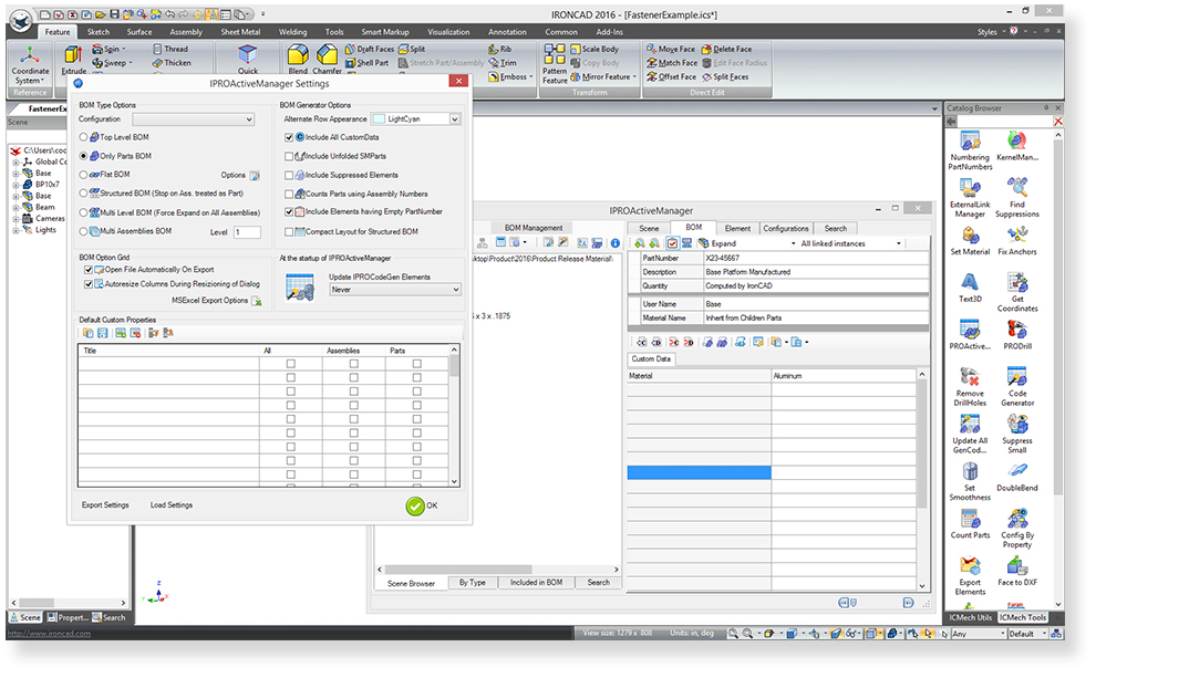 Integral to IronCAD Mechanical is PROActiveManager, a powerful, fully configurable Bill of Material (BOM) data manager that allows quick access to all BOM data in a 3D scene. PROActiveManager can configure or suppress parts and can be used to find and replace text embedded in any component in a part or assembly.