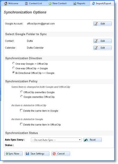 If you store your contacts and appointments using Google or Outlook, then you can synchronize OfficeClip with these applications.