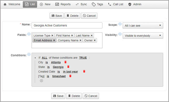 Tags can be assigned on the basis of the products a contact is using or whether a contact is a lead or prospect.
