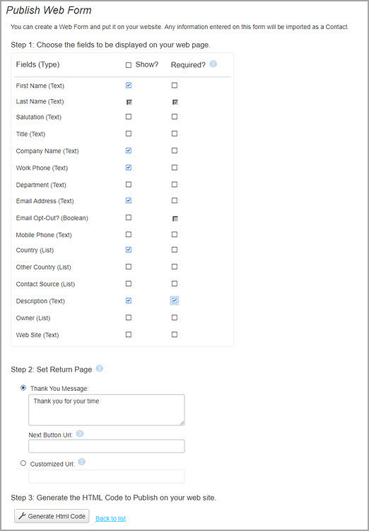 Capturing Leads via Web Form