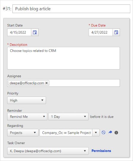 The software provides the ability to create multiple tasks related to a single project, schedule start and due dates, assign it to team members, create various sub-tasks for each task and track all the tasks from the stage of execution to completion.