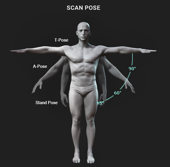 AccuRIG is highly optimized for all kinds of A-poses, and Scan poses as it recognizes 3D scanned humans with varying palm facing directions and raised arm angles. AccuRIG automatically analysis joints and corrects axis with high accuracy - saving studios time and labor costs from repetitive and manual rigging process.