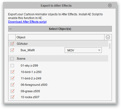 This is an AE script which needs to be installed under Adobe After Effects, for users to seamlessly import animation work (JSON file) from Cartoon Animator to After Effects.