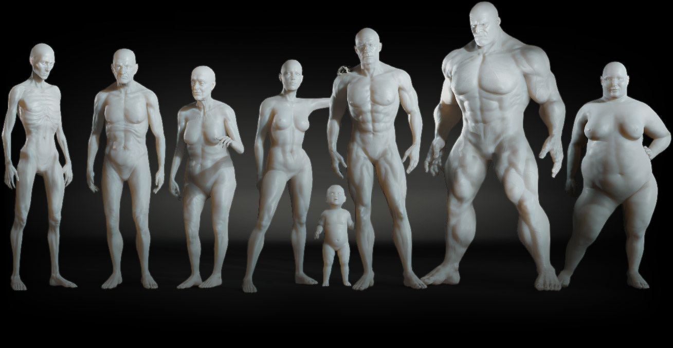 Customize believable human characters by using 300 basic embedded morphs, or extend to the full collection of Human Anatomy Morphs. The separated head and body morph designs provide the highest flexibility to blend with other CC characters. Users can also combine with Headshot, the photo to 3D head generator for digital double creations.