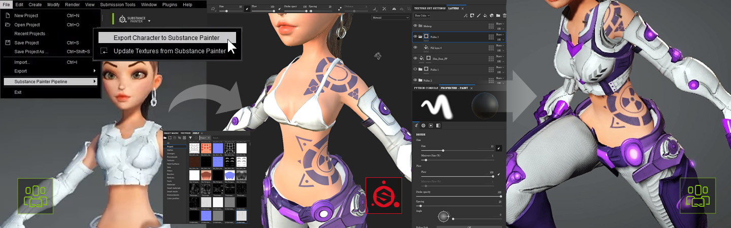 Character Creator provides free addons to speed up the character design workflow with major industry tools, such as GoZ for ZBrush, CC Tools for Blender, and CC AutoSetup (shader and bone structure) for Unreal UE4 and Unity Mecanim. UDIM compatible with Substance Painter, and rigged character compatibility with Marvelous Designer.