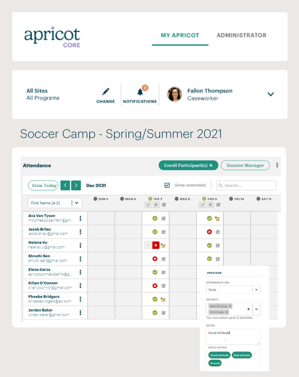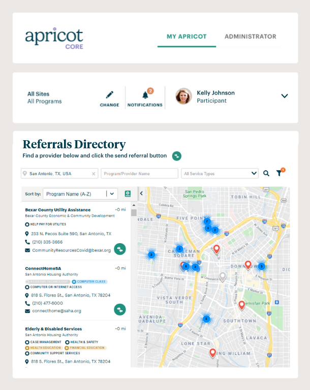 Apricot Core offers comprehensive case management features. At-a-glance insights illuminate trends, while built-in communication tools make it easy to keep participants engaged. Built with the core capabilities you need to grow your impact, Apricot Core empowers organizations to better track their data, understand impact and manage outcomes.