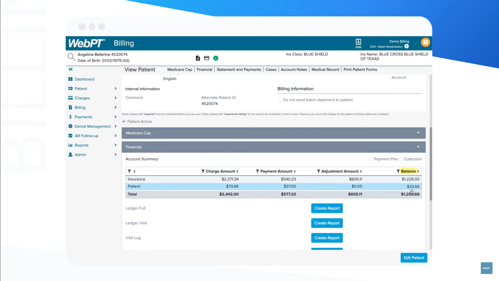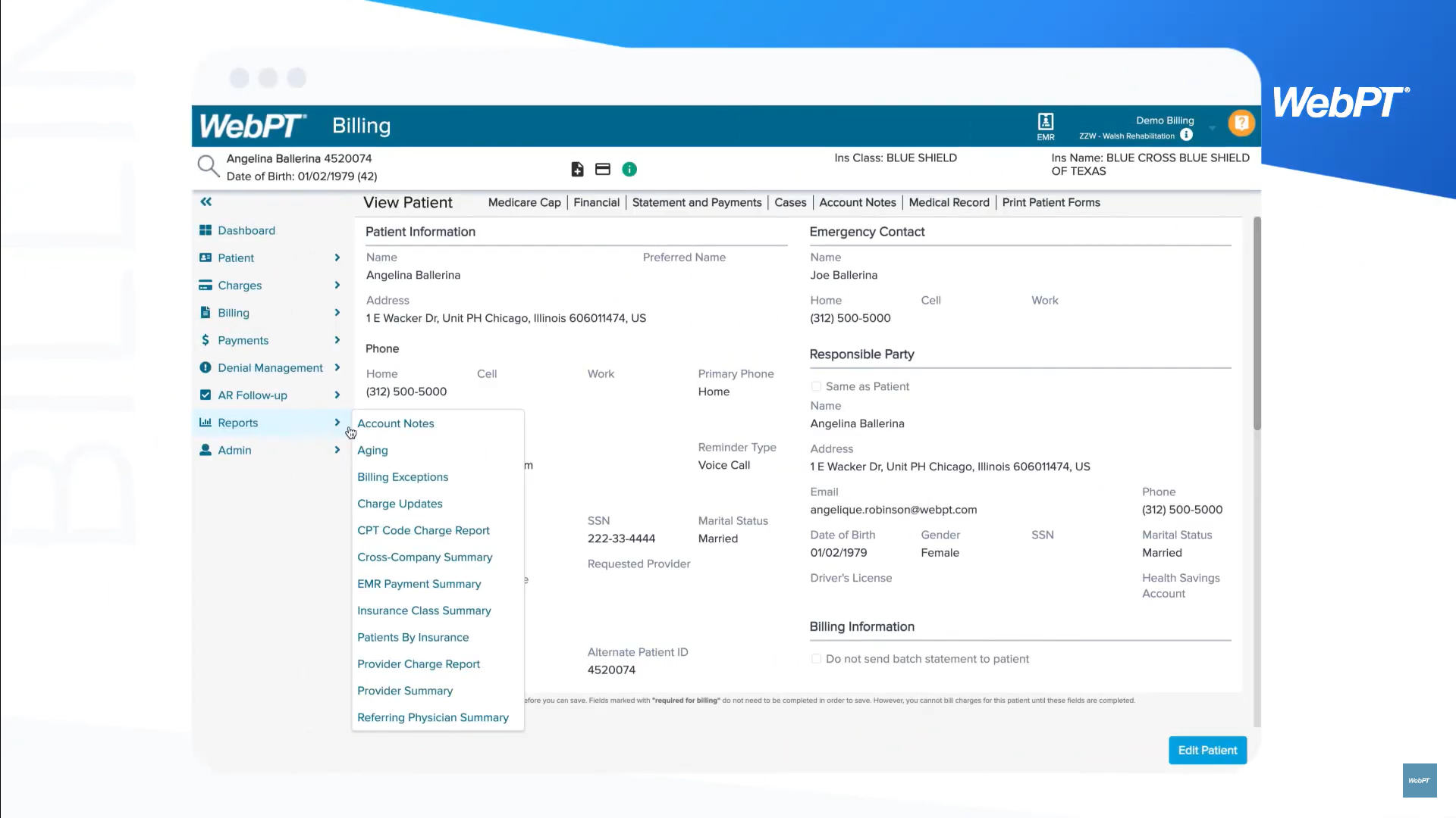 Since 2006, WebPT billing software has successfully processed more than 72 million visits, with collections in excess of $4 billion. With a seamless platform, free training, and unlimited support, we have everything you need to bill in-house—all from a time-tested partner in practice management.