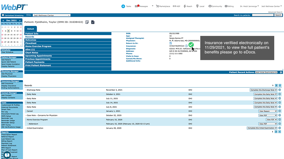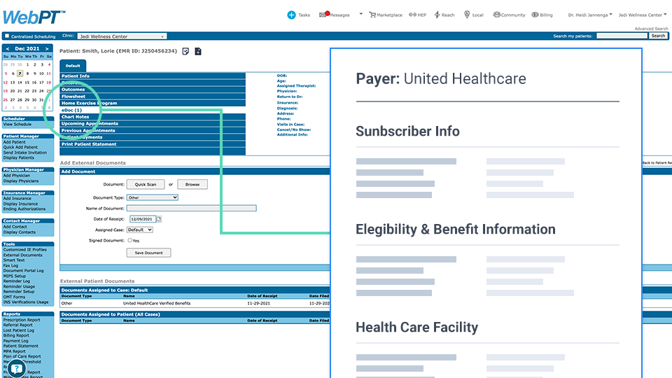 Looking to really kick front-office workflows into high gear? Combine eBV with WebPT’s powerful Digital Patient Intake tool to experience patient registration as it’s meant to be: fast, convenient, and uncomplicated. With these two platforms working side-by-side, patients can easily fill out their paperwork online, and you can verify their insurance information—all before they step foot into the clinic.