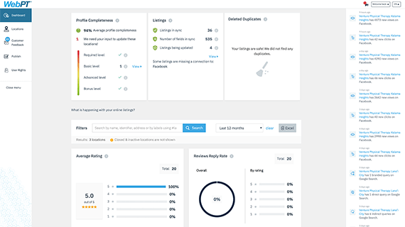 Today, 97% of all consumers search for local businesses online, and 46% of all Google searches are for local information. And considering that 3.5 billion searches are executed on Google every day, there’s never been a more crucial time for your practice to appear accurately, consistently, and frequently in search results. That’s where WebPT Local—an online presence and listing management tool for therapy practices—comes in.
