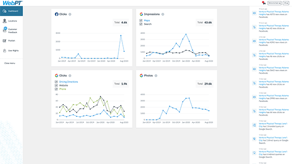 Leverage WebPT Local to build a robust online profile for your practice. Then, automatically push that information out to hundreds of online directories, Google My Business, and social media platforms to drastically increase the probability that prospective patients will find you first when they search for physical therapy in your area.